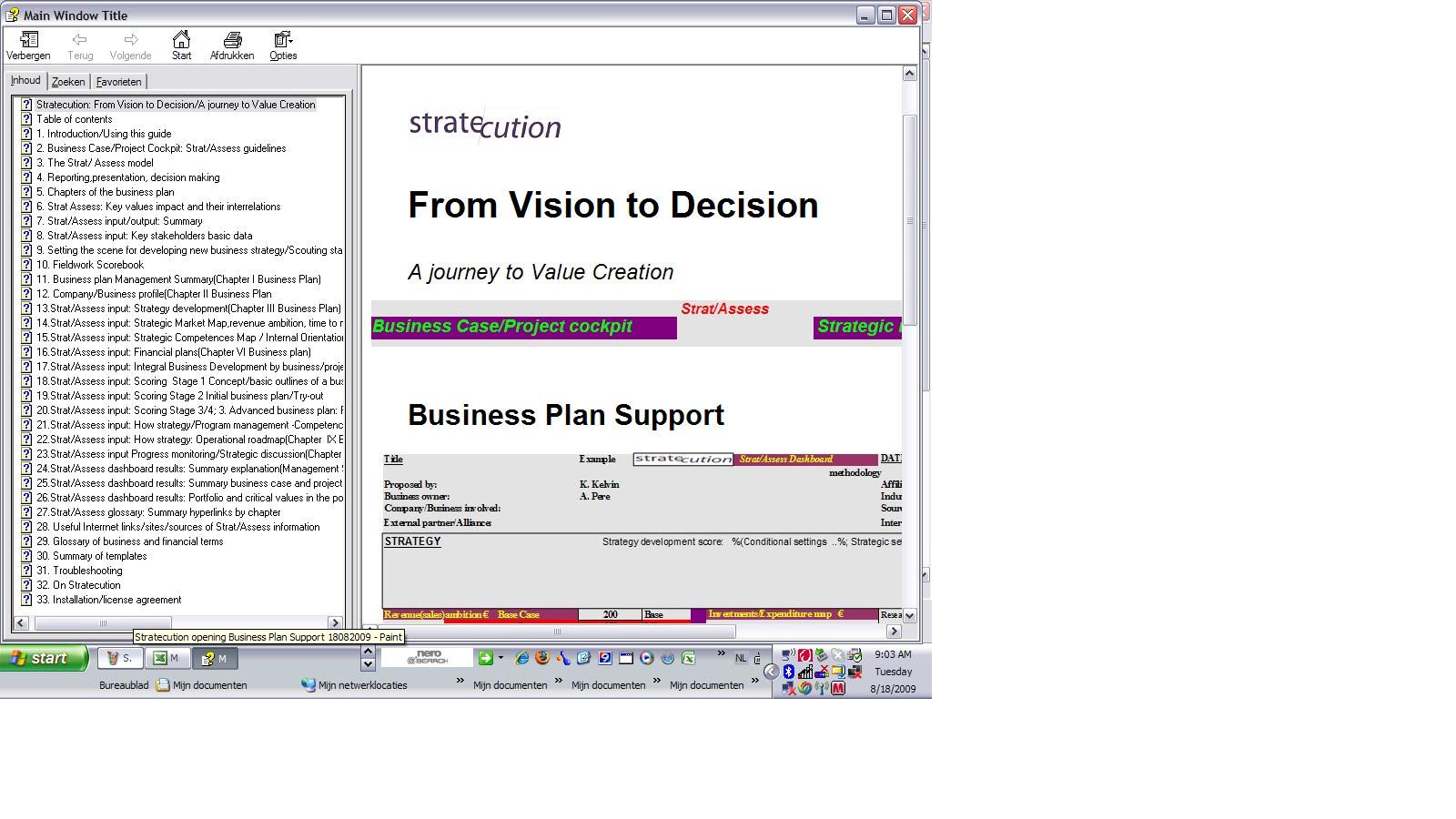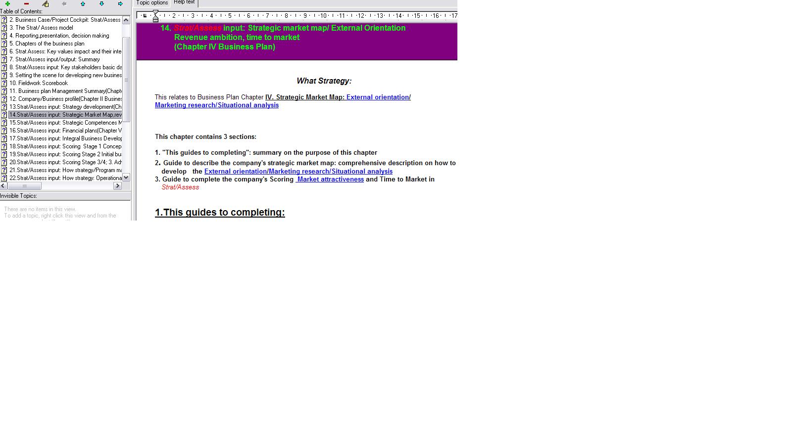 Table of content Strat/Assess e-Book/Business plan Support Guide