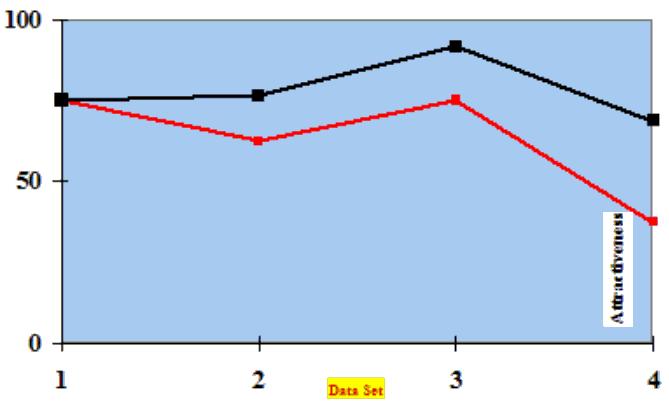 Development over time of the rating for the attractiveness of the business case/project in comparison to the average of the portfolio: