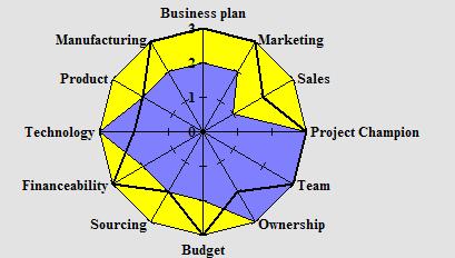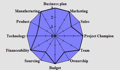 According to the underlying theory a business will fail when not all scores are at 3 level at time of market introduction (at the latest) or when scored for an existing company.
