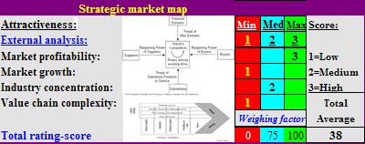- Strategic market attractiveness: scores for the external market analysis