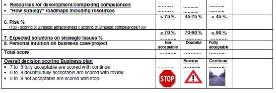 defined as 100% minus the product of the Strategic market attractiveness and Strategic competence scores(the risk can be limited over time by improving competences, whereas market conditions are in most cases a given fact):